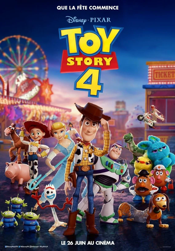 《Toy Story 4》是由 Pixar 與 Walt Disney Pictures 製作的動畫電影,也是《Toy Story 3》的續集。故事講述 Woody 在新的主人 Bonnie 家中生活時,遇到由叉子製作的玩具 Forky。當 Forky 不斷試圖逃離自己的玩具身份時,Woody 必須帶他踏上一段旅程,也在過程中重新思考自己的存在意義。