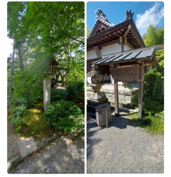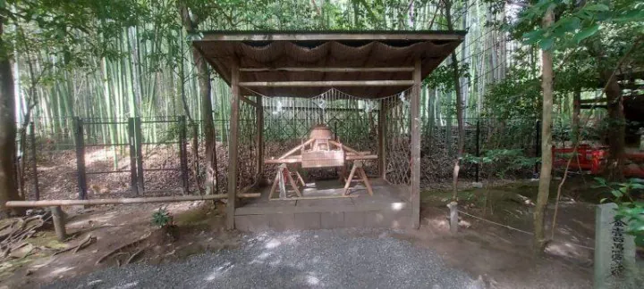 竹林中的小亭與祭祀建築安靜地佇立在林間空地上,木柱與屋頂結構簡潔而樸素。周圍竹林高聳,使整個空間顯得幽靜而神秘。地面鋪著細石與泥土,遊客在這裡停下腳步時,可以聽到風吹過竹葉的聲音。這樣的竹林景觀是嵐山最具代表性的自然特色之一。竹林與寺院建築結合在一起,使整個區域既保留自然景觀,也延續了日本傳統宗教文化。這種寧靜氛圍與京都市區的繁忙形成鮮明對比。