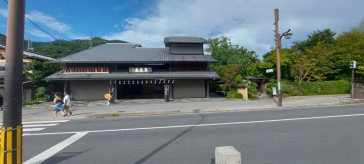 嵐山附近的傳統建築與街道展現出京都文化景區的入口景象。建築外觀採用木材與瓦屋頂設計,保持傳統風格。遊客從街道走向山區與寺院時,會逐漸感受到環境變得安靜。這樣的過渡空間使嵐山的旅程從城市慢慢轉變為自然與文化的探索。