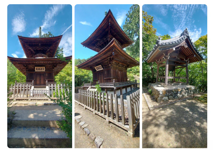 寺院中的木造塔形建築展現出傳統佛教建築的風格。屋簷層層向外延伸,形成優雅的結構線條。深色木材與周圍的綠色植物形成鮮明對比,使整個建築更加突出。建築周圍設有木欄與石階,保持著古老寺院的格局。遊客在這裡可以慢慢欣賞建築細節,從屋頂結構到木柱雕刻都呈現出精細工藝。這些歷史建築讓嵐山不只是自然景區,也是一個充滿文化遺產的地方。