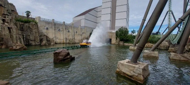 水花濺起的一刻,是體驗的完成點。乘坐動作被軌道精準控制,高潮設計在視覺與聲音中同步出現。完成瞬間短暫,但其背後是完整的系統安排。