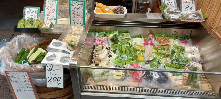 在日本的街市與商店街中,經常可以看到販售各種干菜與腌菜的小店。這些食品被稱為「漬物」,是日本飲食文化中不可缺少的一部分。從黃瓜、白蘿蔔到各種山野菜,經過鹽、味噌或醬油醃製後,不僅能延長保存時間,也形成獨特的風味。許多傳統市場仍然保留手寫標價與簡單展示方式,讓顧客能近距離觀看食材與選擇喜歡的口味。對於旅人而言,這些攤位不僅是購買食物的地方,更是觀察日本飲食文化與日常生活的重要窗口。