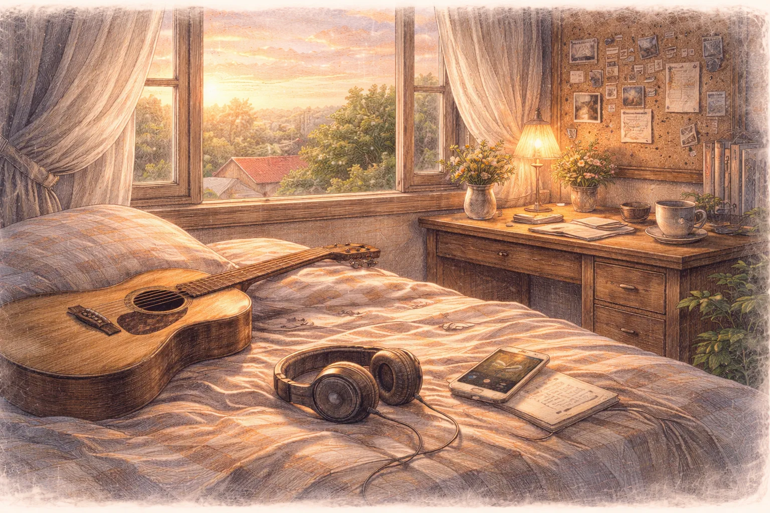 髪を撫でる窓辺の風