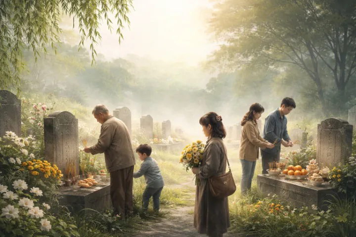 Qingming is perhaps the quietest moment in the calendar, not defined by celebration but by reflection, not by noise but by a deliberate slowing down of time, it is a day that gently insists on remembrance, asking people to turn back and face what is often left unspoken in daily life, for many, Qingming is not about seasonal change but about continuity, about who is still remembered and how memory is carried forward, grave-sweeping appears simple on the surface—clearing weeds, offering incense, maintaining a physical space—but beneath it lies an unspoken agreement across generations, a ritual that transforms absence into presence, when names are spoken aloud before a gravestone, they momentarily regain weight and warmth, no longer just inscriptions but echoes of lives once lived, as children, Qingming is often experienced without full understanding, remembered instead through sensory fragments—the damp earth, the quiet tones of adults, the restrained atmosphere that seems to soften the world, only later does its meaning unfold, revealing itself as a structured moment of remembrance, a pause inserted into the rhythm of modern life, compelling individuals to acknowledge those who came before them, in this way, Qingming becomes a form of guided memory, a day when forgetting is not permitted, when remembrance is not optional but shared, some speak to the departed, others remain silent, yet both acts carry the same intention—to reconnect, to recognize, to continue a relationship that has shifted but not disappeared, families, often scattered by geography and time, find themselves reunited under a common purpose, and in doing so, Qingming expands beyond mourning, it becomes a reaffirmation of the living, a subtle reminder that life continues not in isolation but within a network of inherited stories and shared identities, the ritual stitches together past and present, if only briefly, allowing individuals to exist within a layered sense of time, where memory is not distant but immediate, where history is not abstract but embodied, the smallest details—the preparation of offerings, the recollection of preferences, the shared meal after the visit—become the true carriers of meaning, forming a texture of memory that is intimate and enduring, as one grows older, the perspective shifts again, and Qingming begins to carry a quiet awareness of one’s own place within this cycle, the realization that one day, one will also be remembered, or perhaps forgotten, introduces a subtle tension, a mixture of humility and longing, each act of remembrance then becomes not only a gesture toward the past but also a message to the future, a way of leaving traces behind, ensuring that presence extends beyond physical existence, and so Qingming endures not merely as tradition, but as a living dialogue between time, memory, and identity, reminding us that we are always both the ones who remember and the ones who will be remembered