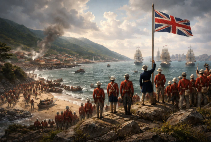 在鴉片戰爭爆發後,中英衝突迅速升級,英軍憑藉強大的海軍力量沿中國沿海推進,並逐步掌握戰略主動權。1841年初,英國決定佔領香港島,作為軍事基地與遠東貿易據點,這一決策深受香港優越地理位置影響,香港島位於珠江口外,擁有天然深水港,既便於軍艦停泊,也利於商船往來,對英國而言具有極高戰略價值。1841年1月,英軍在香港島西北部水域登陸,迅速控制主要據點,清軍抵抗有限且組織鬆散,未能形成有效防禦。同年1月26日,英國正式宣佈佔領香港島,並舉行升旗儀式,象徵主權轉移的開始,這一天後來被視為香港開埠的重要起點。隨後,英國派遣查理·義律作為全權代表,開始規劃香港的行政與貿易發展,初期的香港仍然是一個人口稀少、基礎設施簡陋的小島,但憑藉其港口優勢,很快吸引了大量外國商人與華人移民聚集。英國政府逐步建立殖民地管治架構,包括設立總督制度、引入英國法律體系,以及發展港口設施,使香港逐漸轉變為自由貿易港。隨著鴉片戰爭持續進行,清政府在戰場上節節敗退,最終於1842年與英國簽訂《南京條約》,正式割讓香港島予英國,從法律上確立英國對香港的統治。這一條約不僅改變了香港的政治地位,也對中國的主權造成深遠影響,標誌著近代中國被迫打開國門,進入不平等條約體系。英國佔領香港島後,迅速推動港口建設與城市規劃,中環一帶逐漸發展成為商業核心區,維多利亞港成為遠東最繁忙的港口之一,吸引來自世界各地的商人、銀行與航運公司進駐,香港逐漸由一個邊陲小島轉型為國際貿易樞紐。這一歷史事件不僅奠定了香港作為國際城市的基礎,也深刻影響了其文化、經濟與社會結構,形成中西交匯的獨特特色,並延續至今。英國佔領香港島是鴉片戰爭的重要結果之一,也是香港歷史發展的關鍵起點,其影響不僅局限於19世紀,更塑造了香港在全球格局中的角色與定位,成為理解近代東亞歷史不可或缺的一環。