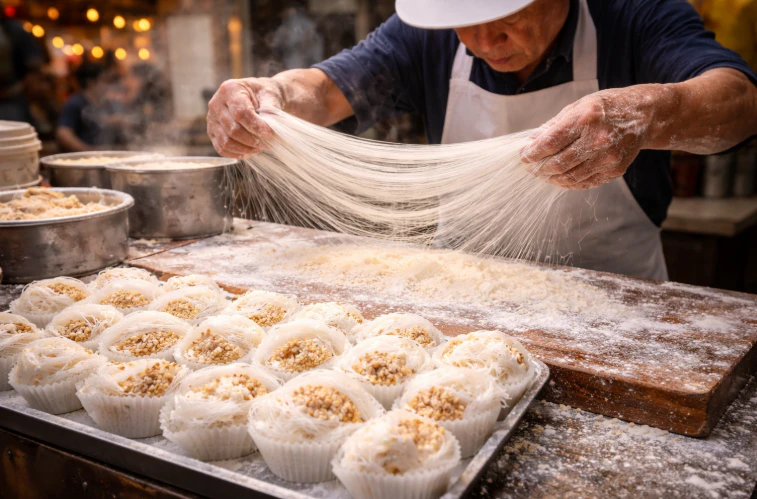 Dragon Beard Candy is a traditional Hong Kong sweet known for its delicate strands of sugar, stretched into thousands of fine threads and filled with crushed peanuts, sesame seeds, and coconut. More than a snack, it is a form of folk performance requiring skill and precision. As street culture fades, this intricate craft has become increasingly rare, symbolizing a passing era in Hong Kong’s cultural landscape.