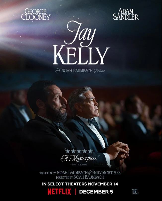 《Jay Kelly》是一部2025年的美國喜劇劇情電影,由導演 Noah Baumbach 執導,並與 Emily Mortimer 共同編劇。電影由 Netflix 製作與發行,主演包括 George Clooney 與 Adam Sandler。故事圍繞一名生活陷入低潮的中年男子展開,在一次意外旅程中重新審視自己的人生、家庭與友誼。影片延續包姆巴赫擅長的人物心理描寫與幽默風格,被視為一部融合諷刺與溫情的人生喜劇。