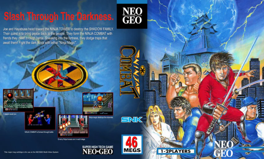 1990年,SNK推出Neo Geo平台,這套系統很快成為街機遊戲市場中的重要力量。與許多其他街機系統不同,Neo Geo在推出初期便擁有多種類型的遊戲,其中包括動作、運動、射擊與格鬥等不同類型。《Ninja Combat》就是Neo Geo早期作品之一,也是以忍者為題材的橫向動作遊戲。